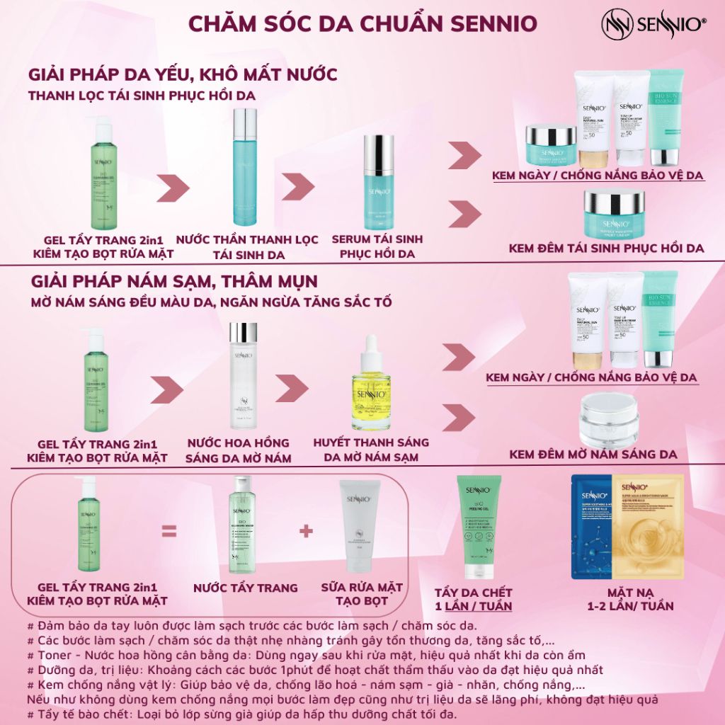 🌈 HƯỚNG DẪN SỬ DỤNG BỘ ĐÔI SẢN PHẨM DƯỠNG TRẮNG BẢO VỆ DA MỜ NÁM, THÂM SẠM SENNIO CHUẨN CHUYÊN GIA: