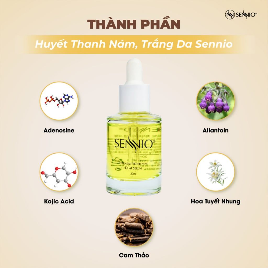 1. Huyết Thanh Nám Dưỡng Trắng Da Sennio: Giúp giảm các vết thâm mụn, nám sạm, cải thiện sắc tố da và đem lại làn da đều màu, sáng rạng rỡ.