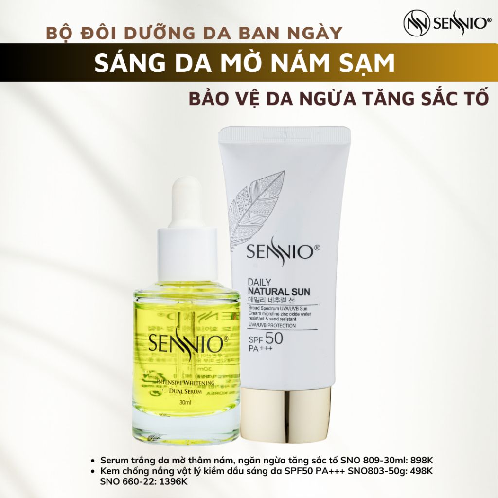 Bộ 2 sản phẩm dưỡng trắng bảo vệ da mờ thâm nám sạm, tàn nhang, ngăn tăng sắc tố melanin SENNIO SNO 660-22