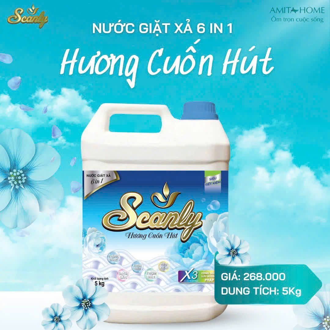 Nước Giặt xả hương Cuốn Hút 6 in 1 Scanly giúp giữ màu bền bỉ, làm mềm từng sợ vải 3.2-5kg