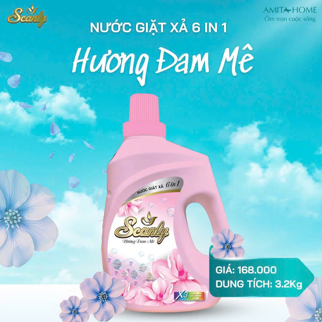 Nước Giặt xả hương Đam Mê 6 in 1 Scanly giúp giữ màu bền bỉ, làm mềm từng sợ vải 3.2-5kg